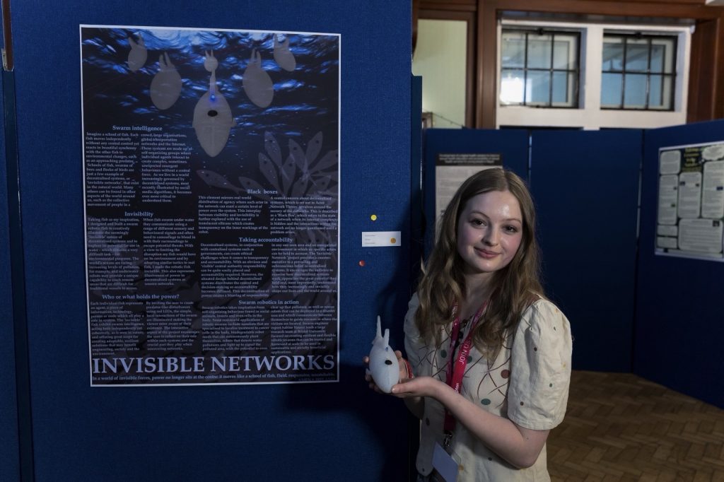 In this project, ‘Invisible Networks’, I use robotic fish to demonstrate the nature of decentralised systems and the complexity they hold. The project transcends the basic notion of central control, showcasing how local interactions can cohere to create complex, emergent behaviours on a global scale.